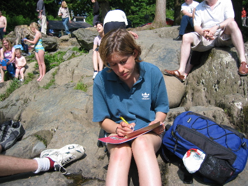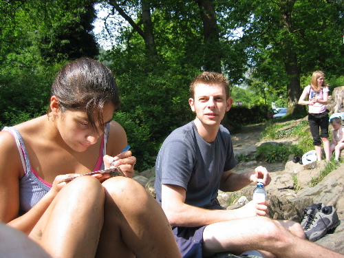 | The following are pics of the group relaxing by the river [seen above] that runs through the center of town. Such a nice day there, that I don't think that a bad picture could have been taken. |
